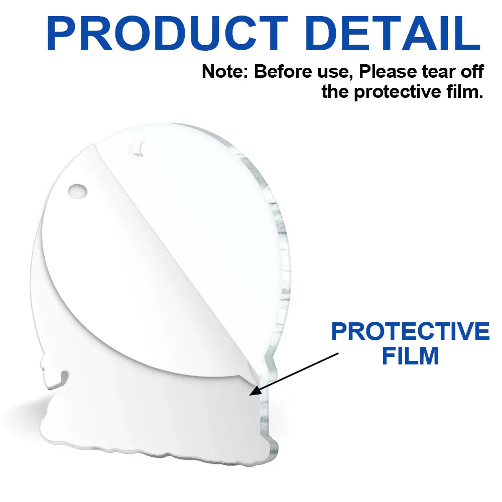 - Our acrylic ornament is covered with a protective film to prevent scratches and dust. Simply, remove the film and your product will be ready to display.